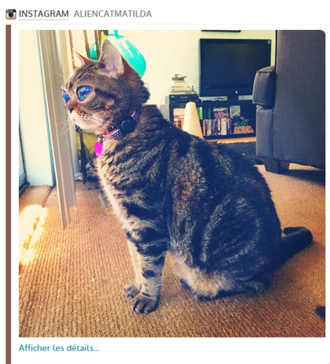 Un compte Instagram a été ouvert au nom du chat. Ses maîtres y postent régulièrement des clichés de leur compagnon à poils. Une page GoFundMe a également vu le jour: les maîtres de l'animal espèrent récolter de l'argent pour une éventuelle future opération (lorsque assurera de réelles garanties de succès) et pour aider les autres chats souffrant de ce mal mystérieux. Selon un spécialiste, interrogé par ABCNews, l'animal souffrirait d'une affection oculaire génétique, d'une position anormale du cristalin et d'un probable glaucome.