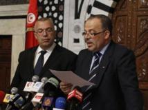 Le ministre tunisien de la Justice, Noureddine Bhiri (g) et le ministre des Droits de l'homme Samir Dilou (d), lors d'une conférence de presse à Tunis, le 25 juin 2012.