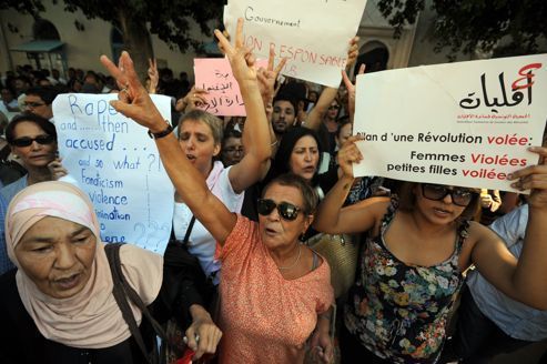 Une petite foule s'est rassemblée mardi sous les fenêtres du palais de justice de Tunis pour soutenir une femme de 28 ans accusée d'atteintes aux bonnes mœurs après avoir été violée par deux policiers, dans la nuit du 3 au 4 septembre dernier. A l'appel lancé sur les réseaux sociaux par des associations de défense des droits de l'homme et de simples citoyens, 500 manifestants, dont des députés du parti Ettakatol, membre de la coalition au pouvoir, ont donné de la voix. Les pancartes rivalisaient d'audace: «En niqab, voilée, maillot ou bikini, rangez vos zizis!», proclamait celle d'Asma, 25 ans, étudiante. Plus grave, le carton de Linda s'indignait: «Tunisie l'amour est un crime, le viol est un art.»«On a fait la révolution pour que la Tunisie aille mieux, explique la jeune femme de 27 ans, elle aussi étudiante. Mais là je suis déçue.» Les slogans, eux, visaient l'institution judiciaire «qui n'est pas indépendante» ainsi que les ministres du gouvernement. Le célèbre «Dégage!» a, une fois de plus, été scandé.