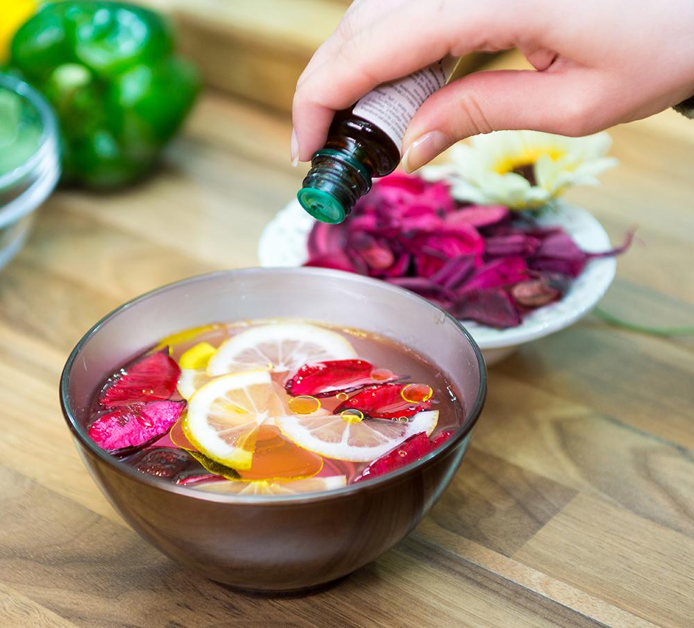 Faites macérer un mélange d’herbes aromatiques et d’huiles essentielles, puis votre domicile deviendra immédiatement plus invitant!