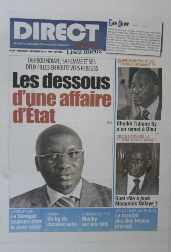 A la Une du Journal Direct Info du mercredi 04 Décembre 2013