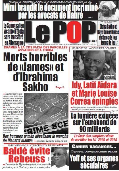 A la Une du Journal Le Populaire du mercredi 27 aout 2014