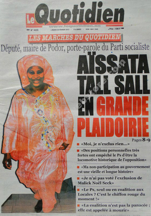 A la Une du Journal Le Quotidien du mardi 26 février 2013