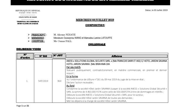 Le Tribunal de Commerce hors classe de Dakar a vidé le jeudi 24 octobre 2019, l’affaire opposant la société de gardiennage « Phoenix Sénégal » à l’Agence de Distribution de Presse dite ADP. Cette dernière a été condamnée à payer à la société plaignante la somme de 3.000.000F CFA à titre de dommages et intérêts. Phoenix...