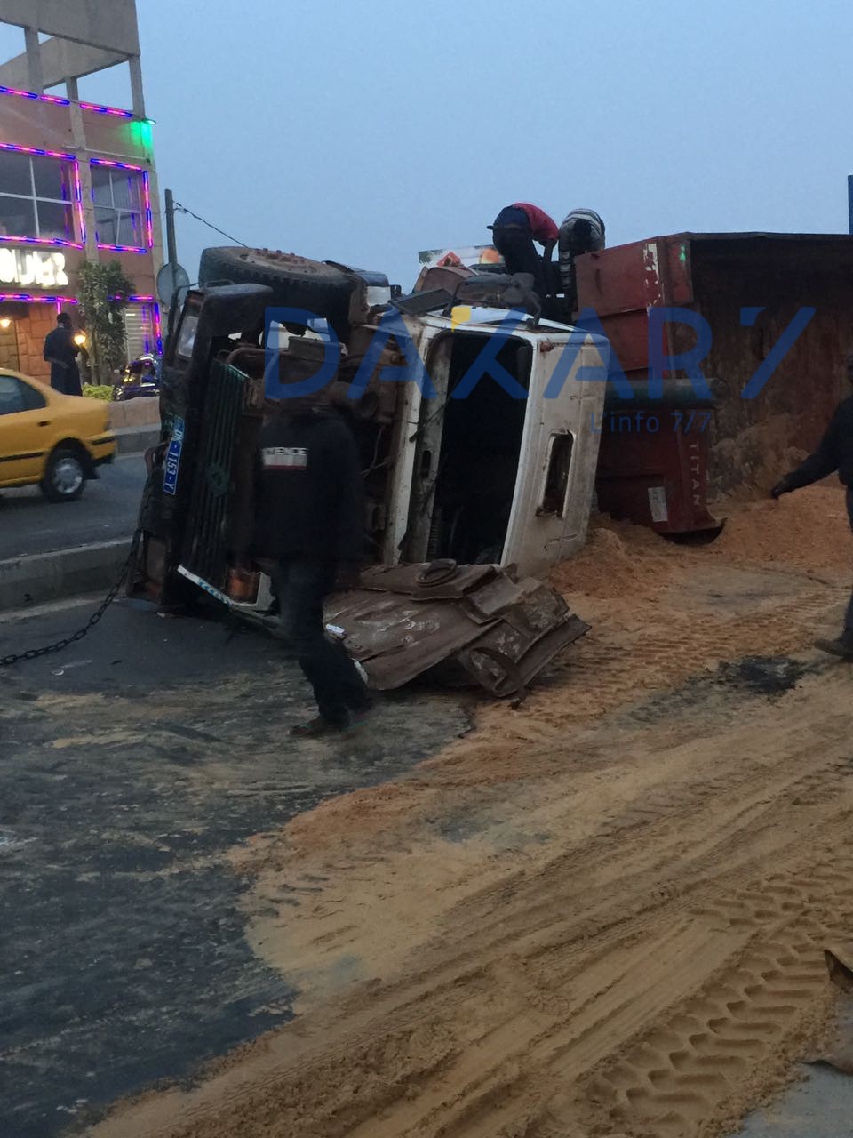 En images : Un camion s’est renversé en pleine circulation sur la route de l’aéroport