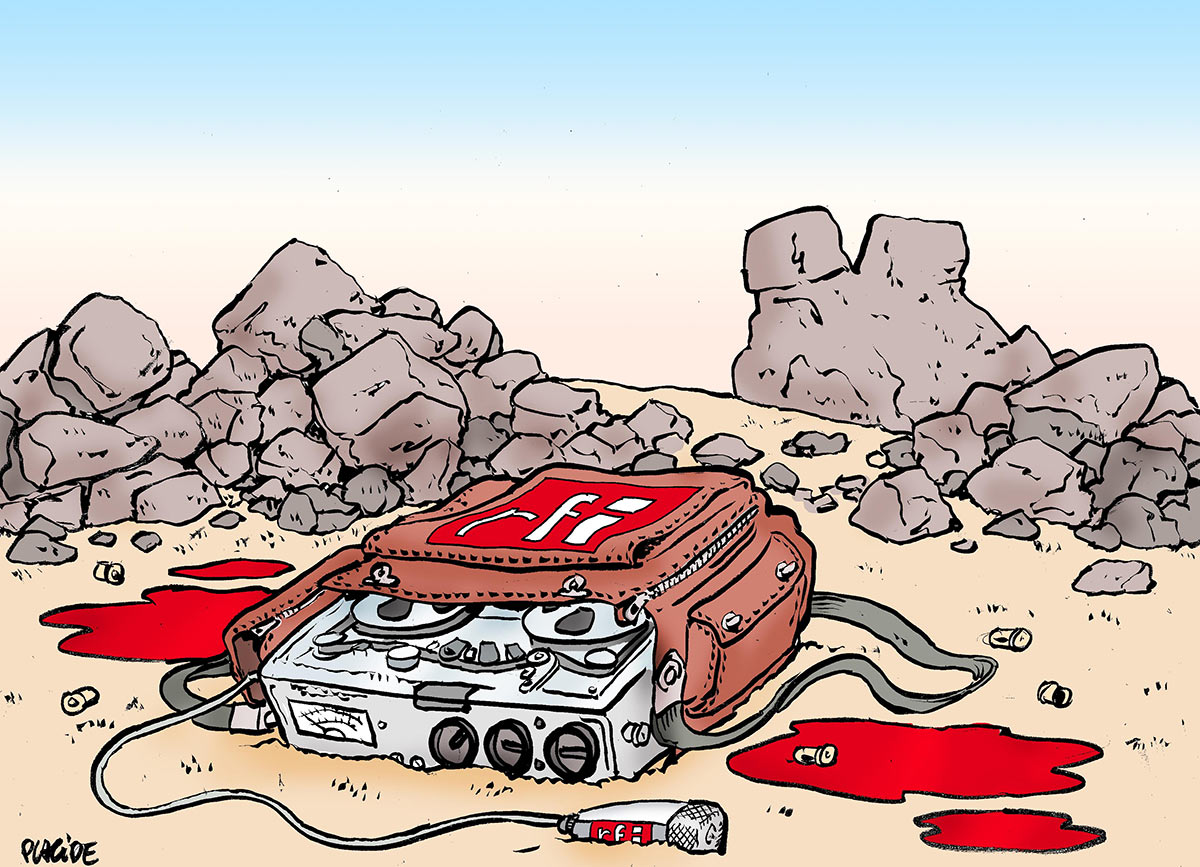 Ils sont dessinateurs de presse en France et un peu partout dans le monde. En 2013, choqués par l’assassinat de nos confrères Ghislaine Dupont et Claude Verlon, ils avaient tenu à réagir avec leur crayon pour dénoncer la violence de ces meurtres et cette insupportable atteinte à la liberté d’expression.