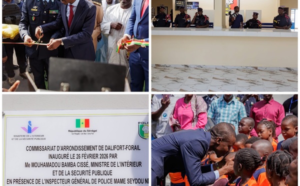 Le Ministre de l’intérieur et de la Sécurité publique, accompagné du Directeur général de la Police nationale et de ses équipes, du Gouverneur et des autorités administratives, ainsi que du Commandant de la Brigade nationale des Sapeurs pompiers, a procédé ce jeudi 26 février 2026, à l’inauguration du Commissariat de Dalifort...