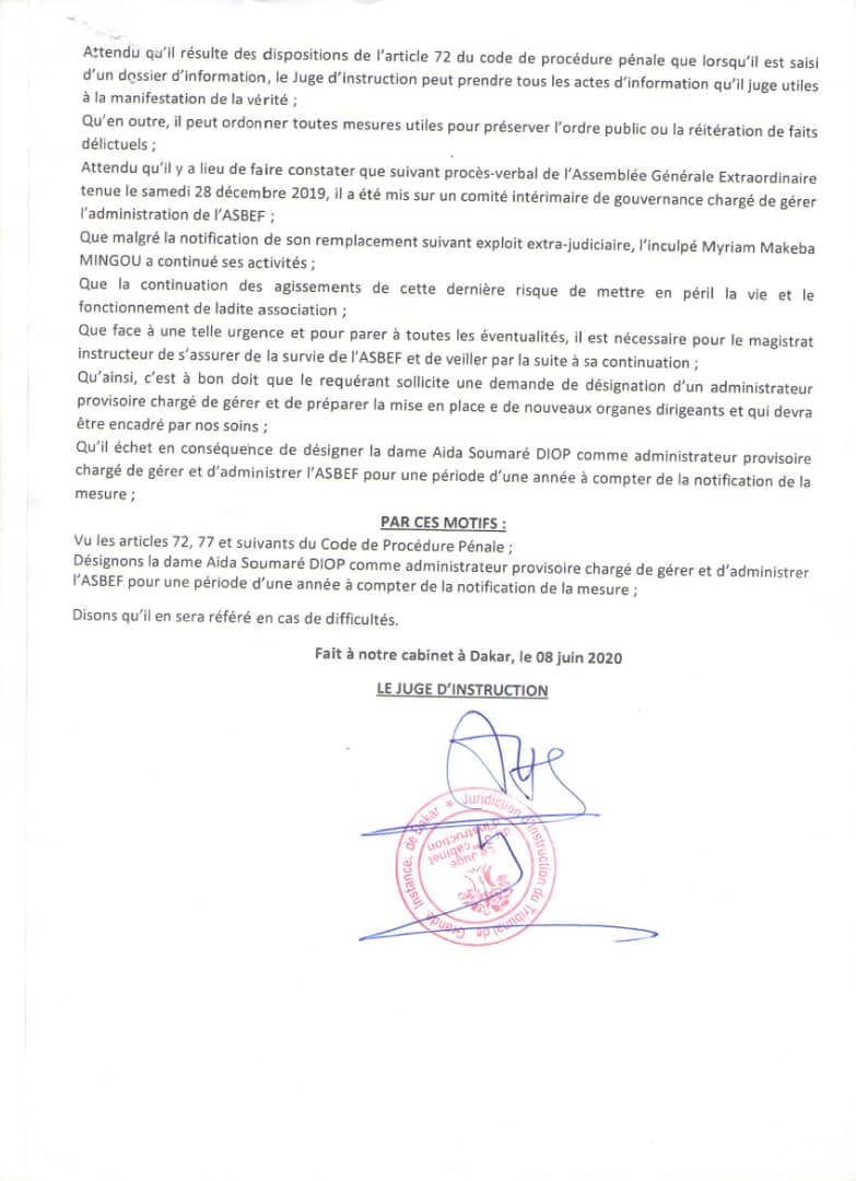 Selon l’info parvenue à leral.net, l'opération consistera à déloger l'ex directrice Exécutive Miriam Makeba Mingou, démise de ses fonctions. C’est ainsi nous dit-on que l’occasion sera saisie pour installer la nouvelle administratrice désignée.
