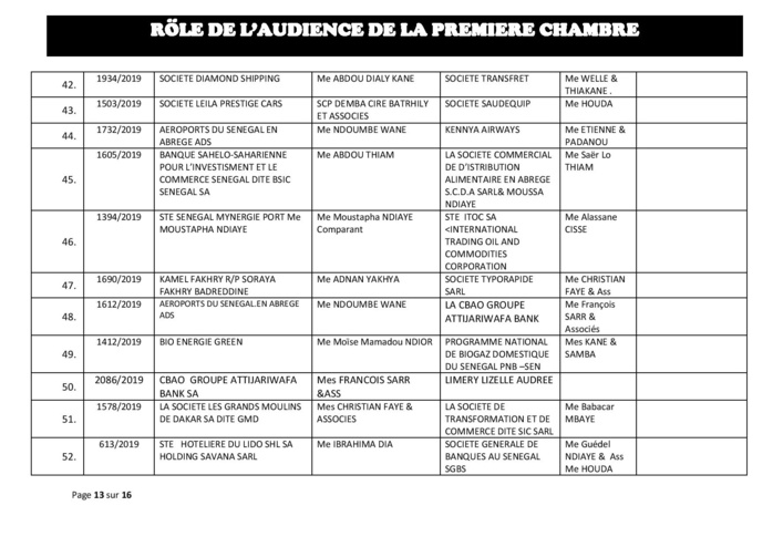 Rôle de l'audience de la Première Chambre du tribunal de Commerce de ce mercredi 29 mai 2019