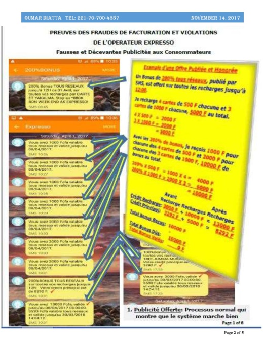 Sous ce registre, il demande à Expresso de faire des excuses publiques dans les médias pour reconnaître avoir arnaqué les populations sénégalaises. Et, il précise qu’Expresso doit aussi, accepter de rembourser les consommateurs sénégalais, escroqués. « Oui, il y aura deux procès. Je leur ai donné le choix de s’excuser publiquement auprès des Sénégalais dans les médias pour les avoir arnaqués et de les rembourser. S’ils font ça, je laisse tomber. Dans le cas contraire, je vais les poursuivre en justice », menace-t-il.