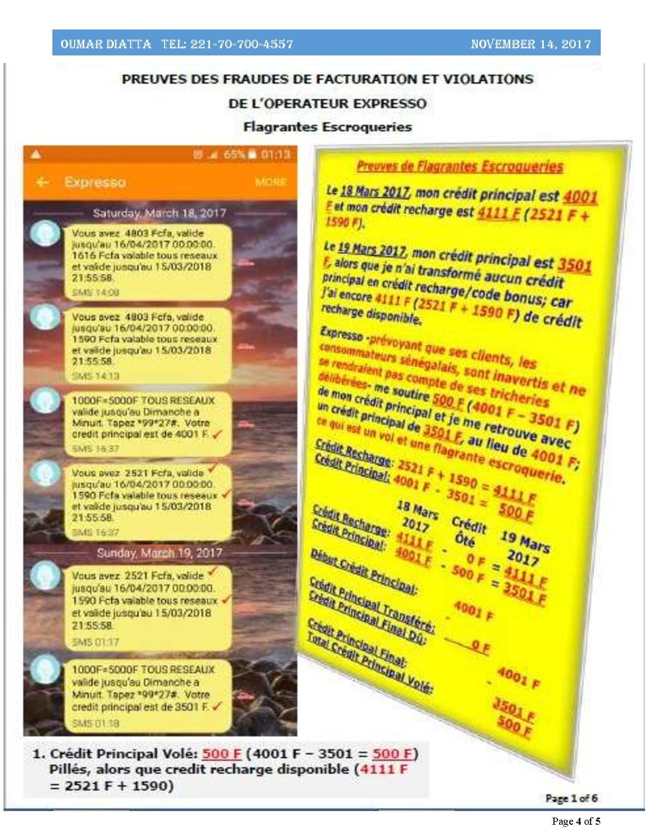 Le feuilleton judiciaire entre Expresso et l’expert en comptabilité-finance et système informatique Oumar Diatta risque de connaître une autre tournure. Oumar Diatta, victime des manoeuvres de cet opérateur, envisage de se plaindre auprès du procureur de la République pour obtenir gain de cause. Conscient de l’incapacité de l’Artp quant à la résolution de ses problèmes, il se prépare minutieusementà la suite de son second combat judiciaire. (3e partie de l’enquête sur la fraude de facturation et violations des droits).