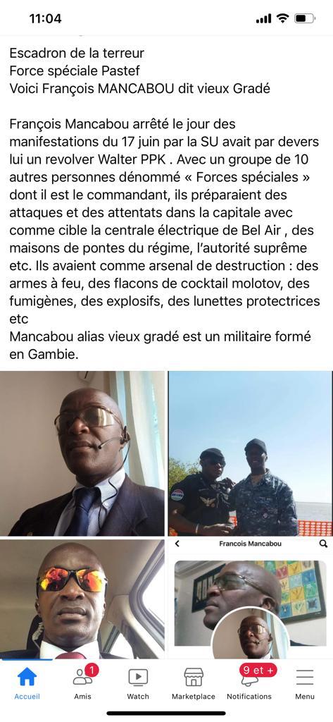 Le 17.06.2022, à 07h, il a été aussi procédé à l’interpellation du nommé François Mancabou alias Vieux, gradé, né le 05.02.1971 à Dakar, de Albert et de Jeanne Malima, agent de sécurité, domicilié à Ouest Foire.