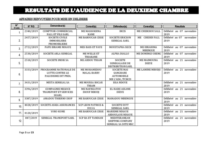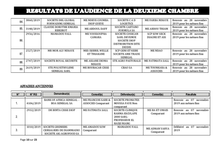 Tribunal de Commerce de Dakar/Deuxième Chambre : Voici les résultats de l’audience du Jeudi 24 octobre 2019