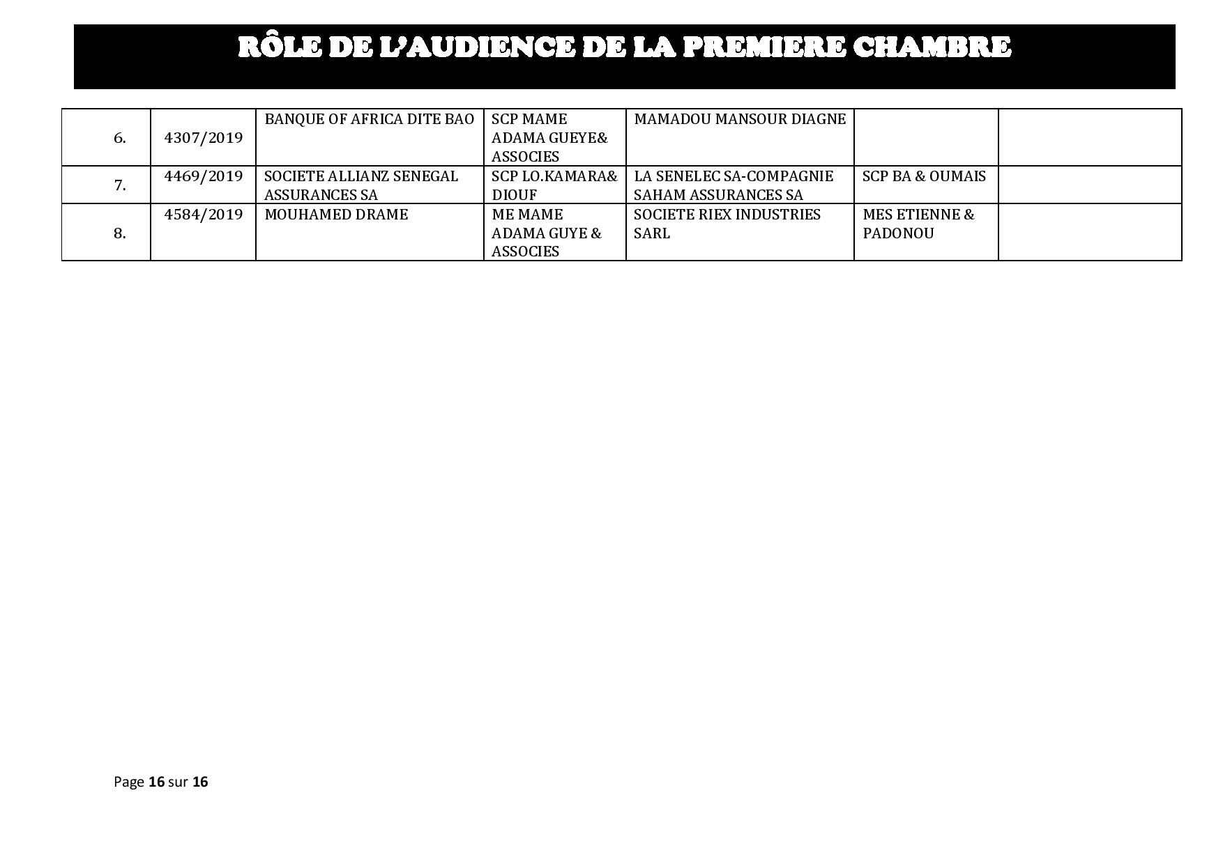 Tribunal du Commerce: Audiences de la Première Chambre de ce mercredi 30 octobre
