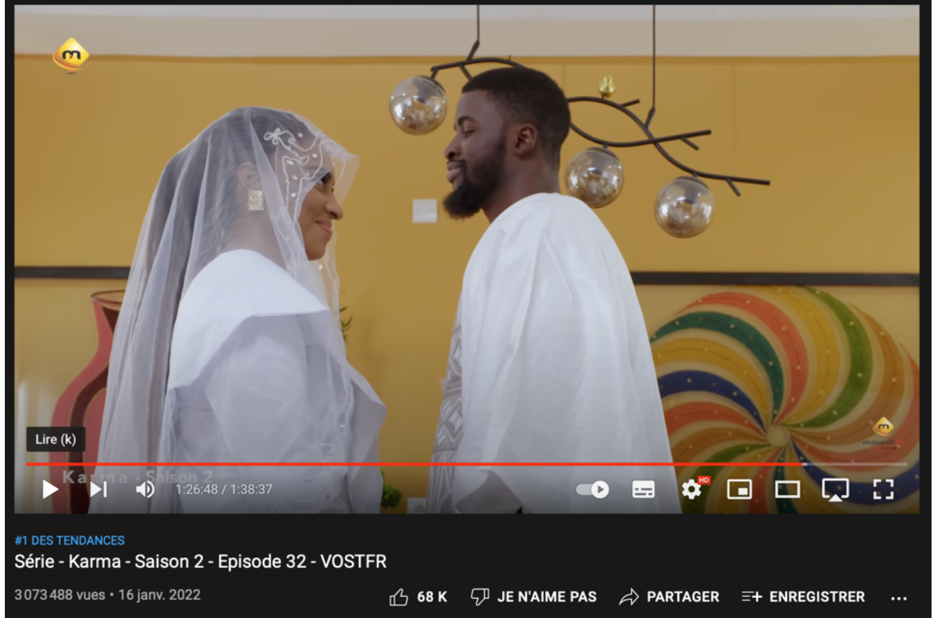 En 4 jours, le dernier épisode de la saison 2 de la série Karma, à lui seul, a battu le record de toutes les audiences, avec 3 millions de vues en 4 jours seulement, une première dans l’histoire de l’audiovisuel au Sénégal.