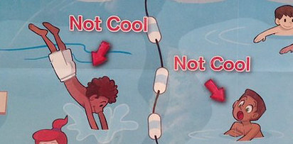 L’affiche qui tentait d’expliquer les règles de sécurité à la piscine a été retirée de la production. La Croix-Rouge américaine a présenté ses excuses «pour tout malentendu».