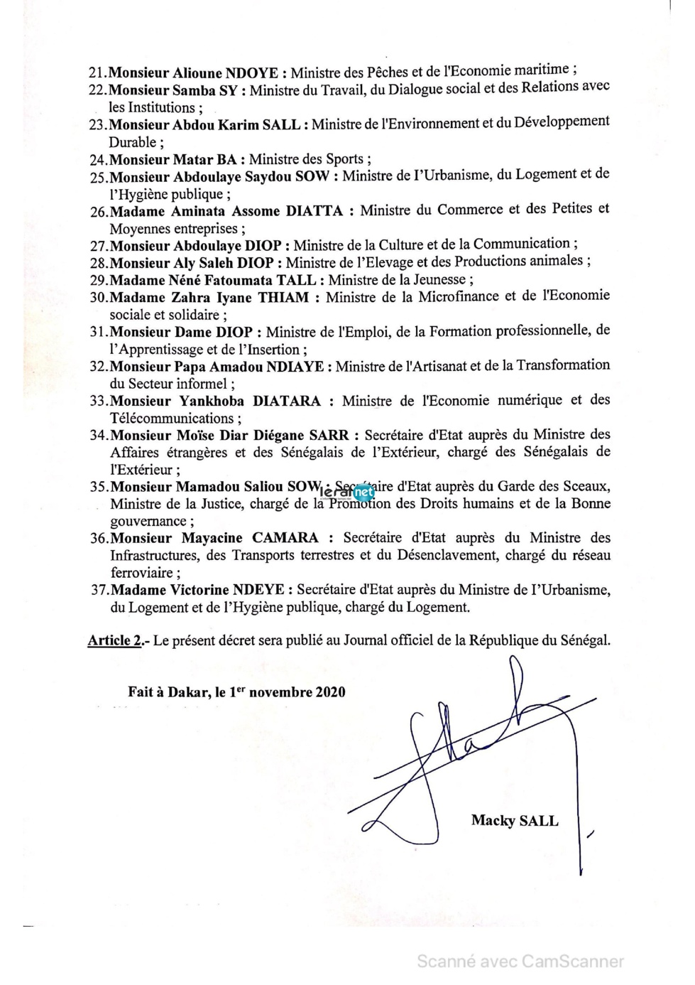 Voici la liste du gouvernement de Macky Sall ( Documents Leral )